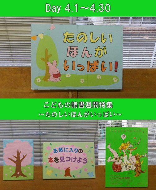 4月の特集「こどもの読書週間特集 ~たのしいほんがいっぱい~」